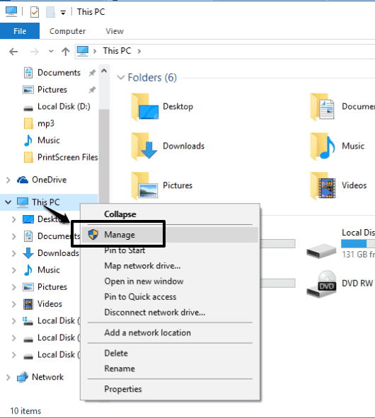 Step 1: Open File Explorer. Right-click on This PC and click on Manage option. It will open Computer Management window.