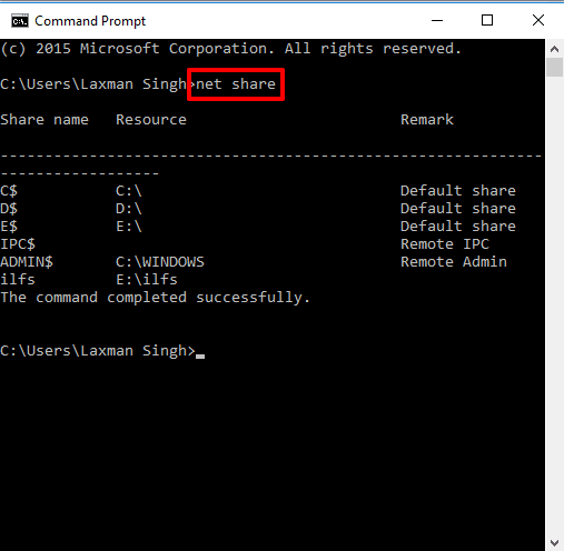 Check Your Shared Folders On Network In Windows 10 Using Command Prompt: