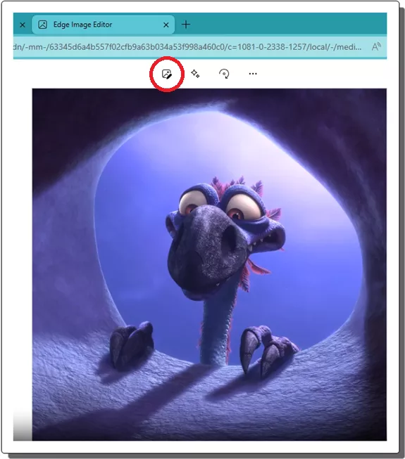 - The image will now open in Edge Image Editor. From the top side, you can click on the edit button and editing tools will appear.