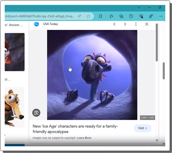 - Launch Edge Canary and then search for some images.