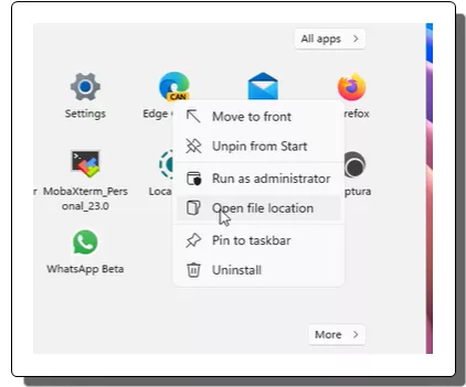 - Now, search Edge canary in Start and then right click to open its location.