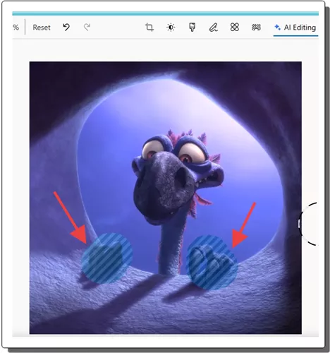 - Now, click on AI editing and then the smart eraser feature will appear. Use the brush tool to select the objects that you want to remove from the photos. You can also adjust the brush size if you want to.