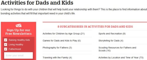 This website has a entire section dedicated to fatherhood. You will find different categories under fatherhood and the activities are also divided into sub categories like activities by age group, storytelling, traveling, etc. You can explore all the sections or just focus on the activities part. The activities section has categories for specific age groups like preschoolers, teenagers, toddlers, etc. Select the one you are looking for. Under the toddlers section there is a great article on activities you can carry out with your toddler in half an hour. These activities don’t take much of your time and at the same time are fun. Even if dad’s are pressed for time, I’m sure they can squeeze in half an hour for these activities with their toddlers.