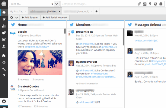 HootSuite (free plan) comes with interface similar to TweetDeck and lets you manage multiple social networking accounts. Total 3 social profiles can be added by you. So you can use this TweetDeck alternative to add all 3 Twitter account or other supported social networks, like Google+, LinkedIn, and Facebook.