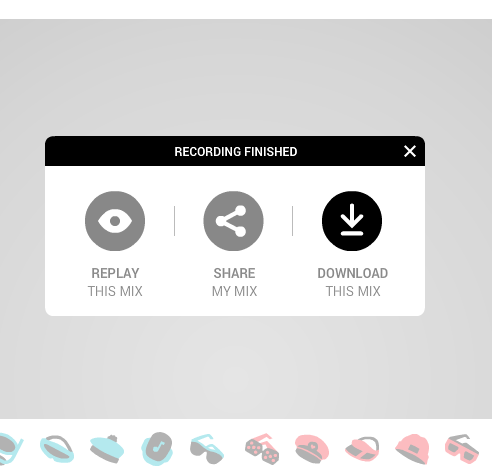 Finally, you can press the RECORD button to generate your remix. You must create up to 10 loops to generate the mix. If the mix is too short, it will prompt you to add some more loops. Stop the recording and then you need to enter your email address, mix title, and other details to generate sharing link and download.