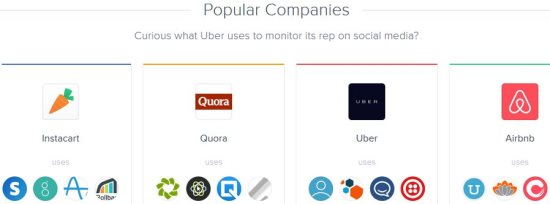 There is also a tab for popular companies, where companies are listed by their name. To see which tools are being used by a company, you will need to create a account with the website. In fact, when you click on the company names while inside a group portfolio, the website will ask you to sign in for seeing the tools being used by that particular company.
