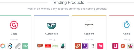 There is also a tab for trending products, which shows which companies are starting to use the upcoming and new products. The products are listed by name and clicking on them shows which companies have started using these new products.