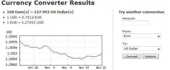 GoCurrency is a free online currency converter to convert currencies of your choice. You can use it to show the currency rates in previous months too. Just choose any source and target currency and it show show conversion rate between both along with historic rates. The rates displayed in this application are 20 minutes late.