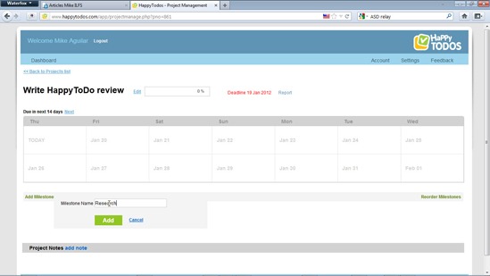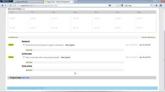 With most projects, there’s going to be a number of different tasks to complete within the project. As an example, when I was checking out this online project management application, I set my projects as writing this review. The different tasks that need to be accomplished in order to complete the project include using the application to see what it can do, check out what the website says the software can do, take a variety of screenshots along the way. Finally, I can write the review.