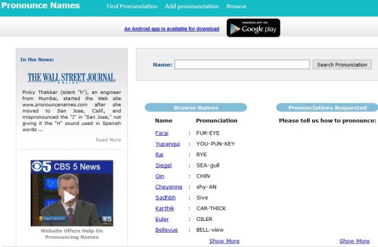 Pronounce Names is a free website which helps you pronounce difficult names. Sometimes you find yourself in a difficult situation when you don’t know how a certain persons name is pronounced. Instead of embarrassing yourself in front of that person you decide to go with sir or mam. Which in turn sounds very formal. So how can you avoid doing this, simple by using this website or its Android app. The website shows you the pronunciation of a name when you enter it on the website.