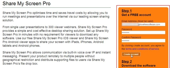 Share My Screen Pro is a cloud service, though, you need to download a software to initiate a screen sharing session from your system. But before that, you need to register yourself with Share My Screen Pro to avail its free benefits.