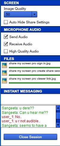Also, you can have an instant messaging chat with the person on the other side if the internet connection slows down, breaking your voice. Or if you want to share some file instantly, you can upload it to your Share My screen Pro ‘s drop box from where the other person can download it to his or her system.