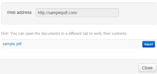 • You can add a pdf directly from web. Either you can add website address from which you want to import pdf or can directly provide pdf link. It will auto fetch it.