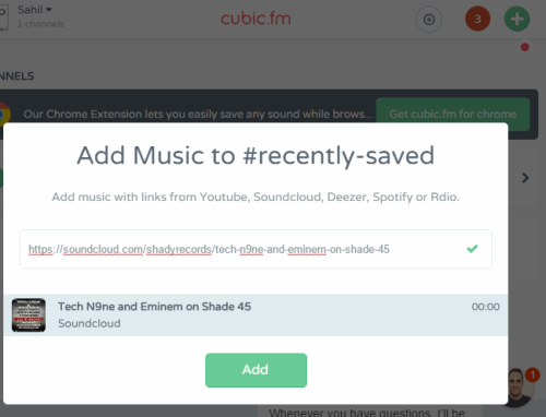 - It provides two different ways to add tracks to playlists: manually by pasting the URL of a track and using Google Chrome extension of cubic.fm. I will suggest you to install its extension. It provides Save button for each individual track for supported music services, social networks, and blogs, like Pandora, Shazam, 8tracks, Twitter, Hype Machine, TuneIn, Reddit, iTunes, Shuffler, etc.