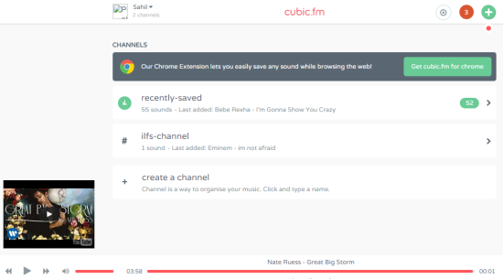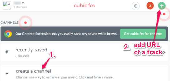 On the dashboard of your cubic.fm account, you will see a recently-saved channel and option to create your own channel. Start by creating your own channels and then you can add music to them.
