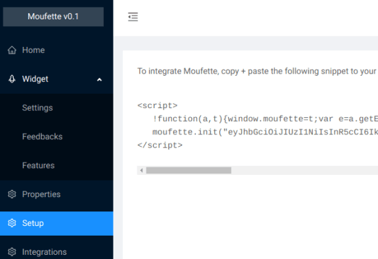 Now, it’s time to install the feedback widget on your website. To do that, just copy the code from the Setup section of the dashboard and paste that in the head section of your website. Simple as that.