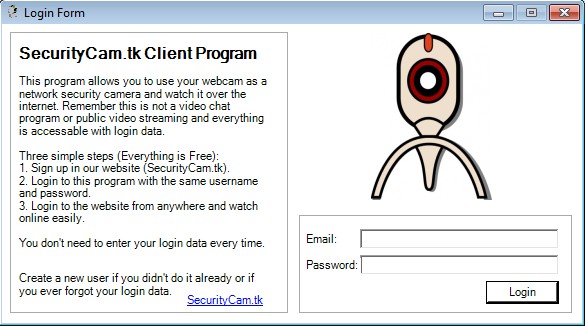 To use 3rd Eye, you first need to register on the website, because when you run the desktop application, the SecurityCam client, you’ll need to enter username and password.