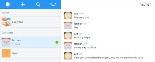 - Add: Add new users for chatting from here and also create groups from here for group chatting. Just click on the name of the users you want to add to the group and then on Next to give a name to your group.
