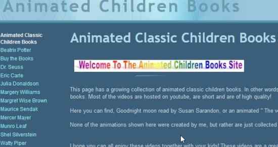 This is a website hosted on Google Sites and has a limited but good collection of classic children’s books. The animated books are listed by the name of the author of the book. The animated videos that are played are streamed through YouTube. Some of the videos have popular celebrities like Susan Sarandon, Billy Crystal, etc. doing the narration of the story. But the downside of the videos being streamed from YouTube is that some of the videos have become unavailable due to copyright violation.