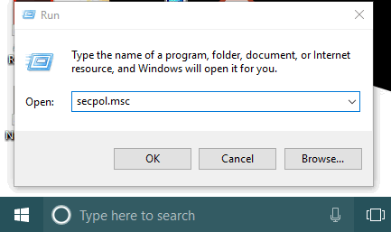 Step 1: Use Run Command (Win+R), type ‘secpol.msc‘, and click Enter. It will open Local Security Policy.