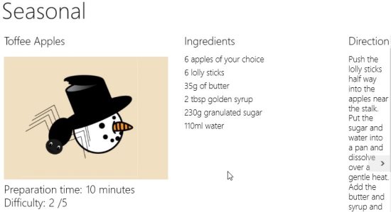 The app works better in full screen mode than in snapped mode. Right now you can see the cakes recipes on the home page of this app. You can browse through the app and decide which recipes you want to try out with your little one.