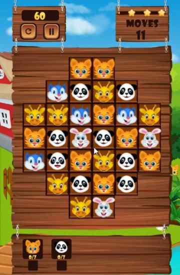 - Match 3 or more same animals to wipe them off the board.
