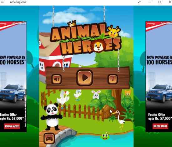 The Windows 10 match 3 animals puzzle game app can be downloaded from the Windows 10 store or from the link given at the end of this article. When you start the app you will come across an interface like the one given in the screenshot below.