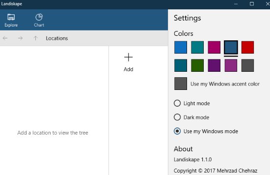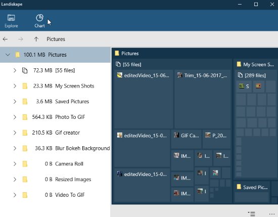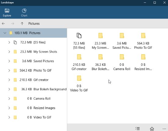 Landiskape is a free Windows 10 storage space viewer app to view how much storage space is being used by which folder on your device in a tree map like view. This app can come in handy when you are low on disk space and can’t find where all the space is being used up. This app will let you add you music, photos, videos, etc. folders to the app and show you how much space is being used up by which file or folder. The app will show you all the folder and files in a tree view so you would be able to navigate through them easily.
