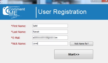 Install CommentME to create your own photo comments. It is 35.2 MB in size and you can find its download link at the end. While running it for the first time, it will ask you for user registration. Simply enter details, like your name, email address, and a nick name.