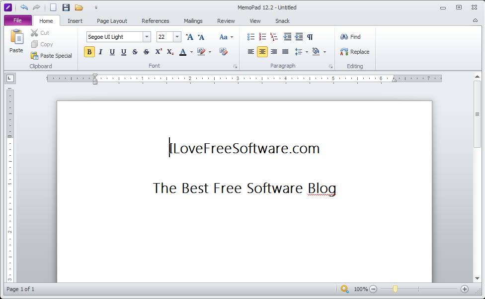 As you can see, we weren’t lying when we said that there is a lot of similarity between MemoPad and Word. Notice the ribbon menu at the top where you just switch between various options by clicking on tabs like Home, Insert, Page Layout, and all the others which are located above the actual ribbon. Start writing text, to format it you need to click on the Home tab.