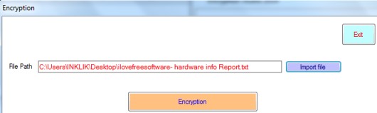 Use Encryption button and a new window will open up. Here, simply import a text file that you want to encrypt and tap on Encryption button. You will be asked to select the location to save encrypted file. Provide the destination path and save it.