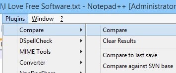 Compare is a free Notepad++ file comparison plugin to compare two files in Notepad++. It is a useful plugin which lets you compare one text file with several other available text files in the Notepad++ tab one by one and side by side. It make comparison very clear by highlighting the differences between the files using different colors.