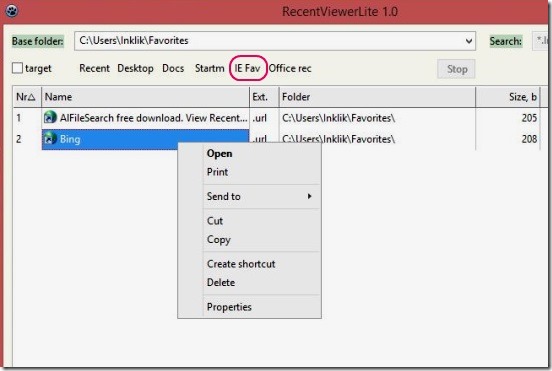 One more feature that I liked in this little utility software is, it also lists down Internet Explorer favorites, at one place, and shows the creation date, last accessed date, and size etc. information. And lets you quick launch the URLs.