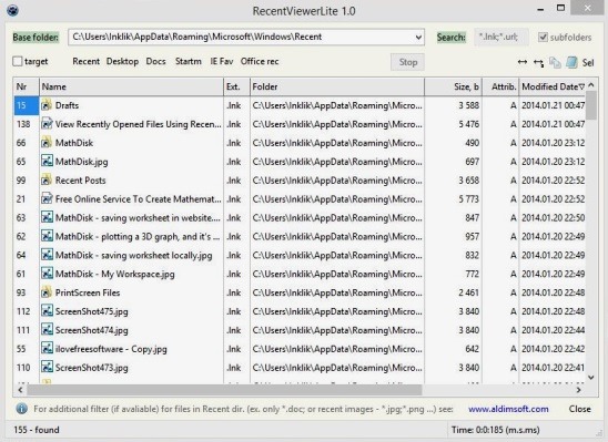 Here’s one more similar free utility software, you might want to check: RecentFilesView.