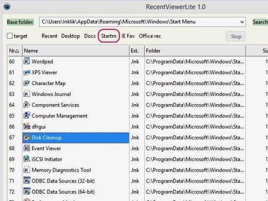 Plus, this app also lists down, all the Start Menu and Desktop shortcuts, and shortcuts for MS Office recent, Internet Explorer favorites, and Documents shortcuts. And, then gives the same set of context menu options and information, with their shortcuts.