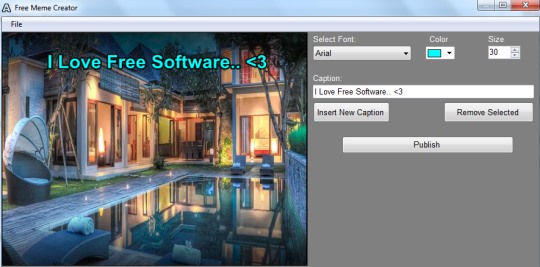 Free Meme Creator is a nice tool to quickly create a meme. But some features are missing with this Free Meme Creator. Features, like multiple image format support and option to publish a created meme directly to Facebook, Twitter etc. Moreover, it should provide preset captions that users can choose and add to photos. Additionally, the need for the software itself might be questioned as image editing tools can let you do the same. Still, if you want a simple software that just adds caption to images, you can give this software a try.