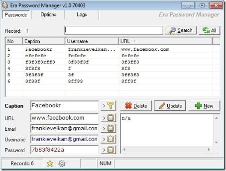 Era Password Manager is another free portable password manager software that lets you easily store, save, and manage all your passwords. It stores all the passwords in a single password protected database. It provides you right click drag and drop feature to insert usernames and passwords without typing them so as to avoid the risk of keyloggers. It lets you type in the URL, email address, username, and the password, and at the same time allows you to add caption to each entry. This password manager software also lets you generates the super unique passwords in just one click. It provides you various settings like right-click drag and drop, autorun on Windows start, and more, which you can choose according to your convenience. It provides you search tool which you can use to find password if in case you have many entries created. This tool is available in installable version also.