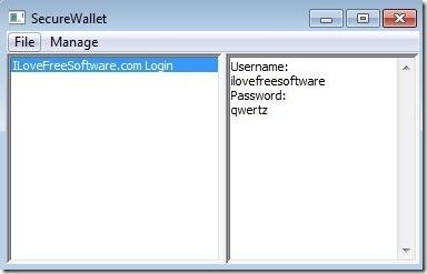 SecureWallet is a free portable password manager software that quickly saves your online login information like website name, username, and the password to a database encrypted with a single password. This is one of the simplest password manager software that protects all your online login info with ease. It offers you two types of interfaces, namely: barebones and rudimentary. All the account details get saved in an encrypted document file to the folder where this password manager software is located. This password manager is apt for those users who believe in simplicity and don’t wish to have multiple menus and options while saving passwords of various websites.