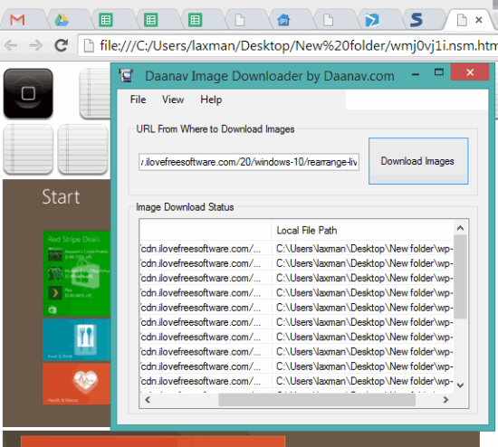 Daanav Image Downloader is another handy software that can fetch images from any webpage and creates an HTML file for those images. You can open that HTML file and all images of that particular webpage will be visible to you. Apart from this, it also creates a folder to automatically save images. Whether there are GIF images, PNG, and JPG, it will grab webpage images for you.