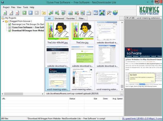 NeoDownloader Lite is very useful to download images from a webpage or from the whole website. However, it can download only JPG images in this free version. It provides a wizard to start the new project for downloading the images from a particular webpage/website.