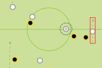 The players who has a dotted arrow path along them move themselves when they get the ball.