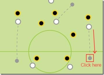 All the white circles are your team players and black colored circles are opposite team players. The opposite team players are controlled by computer. So, your task is to avoid the computer players and make a goal. If any of the computer player intercepts you from reaching the ball, then you have to start all over again.