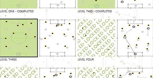 This football tactics game has 42 levels to compete with the computer. There is a tutorial and demo game for practice. From chapter one you have to start playing from first level and complete it to unlock the next level. Whenever you win a lower level, the next level will be unlocked and so on. There are six levels in each chapter.
