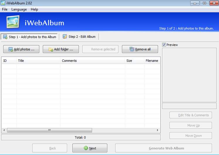 iWebAlbum is very easy to use and understand, options are clearly laid out, if only it had more skins available for web albums, but since the program is free, what we get is more than enough. Give it a spin and see how you like it.