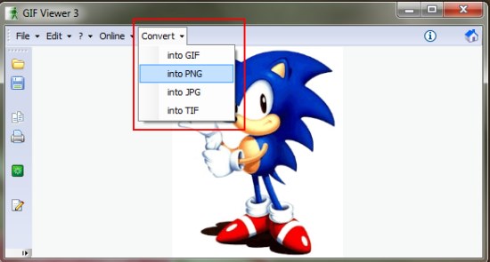 Another interesting thing about this free GIF Viewer is that it comes with a built-in image conversion tool and allows you to convert GIF images into other popular image file formats including PNG, JPEG, and TIFF.