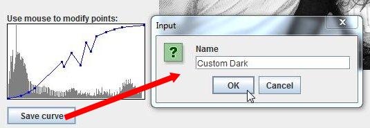 The custom tone curve let’s you manually adjust the points in the image graph and save it to the list of the available tone curves.
