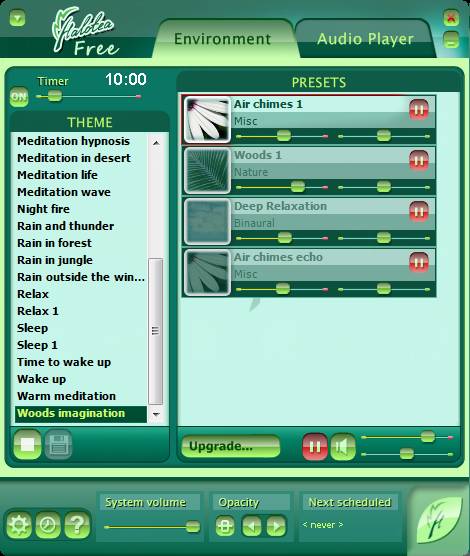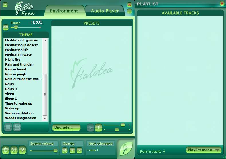 Halotea Free is a free audio software designed for all those who have highly stressful jobs or are in some other way under stress without the possibility to relax. This free audio software comes packed with dozens of different relaxing audio themes which you can use during meditation, when you are at work in order to increase focus and so on. Audio player is also available, with a very large number of formats being supported.