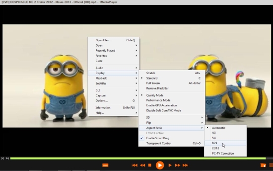 When you select the appropriate file, 1mediaplayer starts playing it for you. You can any time switch to the full-screen mode or adjust aspect ratio or other display settings according to your convenience.