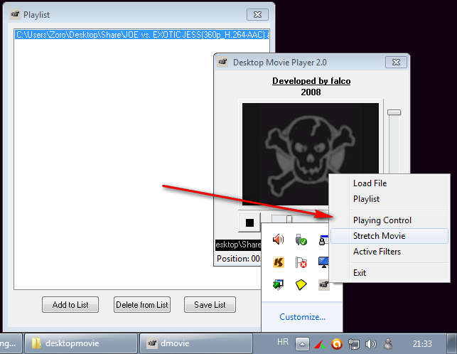 Desktop Movie 2.0 is a very simple movie player which is gonna play movies as your desktop background. Majority of us when we are on the computer doing something we rarely focus just one thing, we’re actually doing several things at once, which is called multitasking, that is why we have windows through which we can easily switch. When it comes to watching movies it can be a bit harder to focus on other things, which is why you should play them instead of your desktop background.