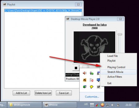 Desktop Movie can be very useful for all those who would like to play a movie somewhere in the background and only listen to what’s going on, perhaps quickly minimize active windows when something interesting starts happening. That’s basically how majority of people are watching the TV now, just listening, while doing something else, being on the computer, cooking and so on. Using the program isn’t very difficult, although perhaps the player controls menu could be displayed right away, some might not figure out that there’s a tray icon where they can activate it. Download Desktop Movie for free and enjoy video as desktop background.